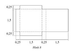 Câu 11 [1039203]: Cho miếng bìa có kích thước như hình vẽ bên (các số đo trên hình tính theo đơn vi decimeter). Từ miếng bìa đó, người ta gấp thành một hình hộp chữ nhật. Thể tích của hình hộp chữ nhật đó bằng