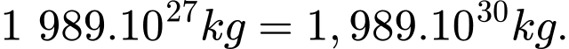 Viết các số sau theo kí hiệu khoa học (với đơn vị đã cho) thì ta được: Khối lượng của Mặt Trời khoảng