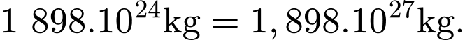 tương đương với __________ kg. Khối lượng của Sao Mộc khoảng