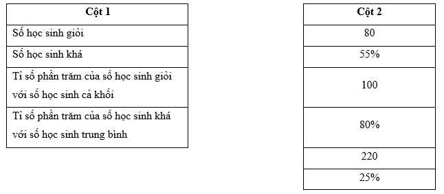 số học sinh trung bình. Còn lại là học sinh giỏi. Hãy ghép biểu thức trong cột 1 với giá trị phù hợp nhất trong cột 2. Có hai giá trị thừa mà bạn không cần sử dụng.