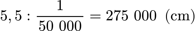 Câu 16 [1040598]: Trong một bản đồ có tỉ lệ 1 : 50000 thì chiều dài của cây cầu Cần Thơ bắc qua sông Hậu là 5,5 cm. Tính chiều dài thật của cầu Cần Thơ.