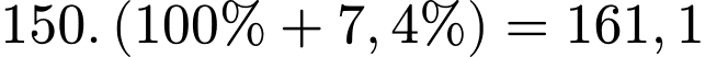 Câu 22 [1040604]: Lãi suất tiền gửi kì hạn một năm của một ngân hàng là 7,4%. Bác Đức gửi 150 triệu đồng vào ngân hàng đó. Sau một năm, bác Đức rút cả vốn lẫn lãi thì nhận được bao nhiêu tiền?
