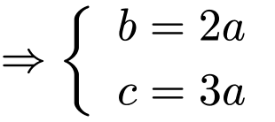 Dựa vào dữ kiện: a tỉ lệ thuận với b theo hệ số tỉ lệ 2; b tỉ lệ thuận với c theo hệ số tỉ lệ