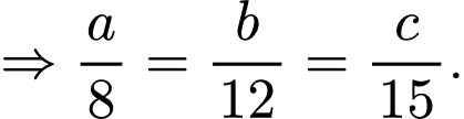a, b, c tỉ lệ với 8; 12; 15.