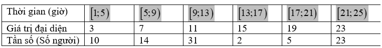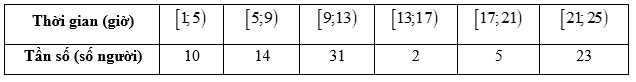 Câu 3 [1038172]: Một câu lạc bộ thể dục thể thao đã ghi lại số giờ các thành viên của mình sử dụng cơ sở vật chất của câu lạc bộ để tập luyện trong một tháng như sau: