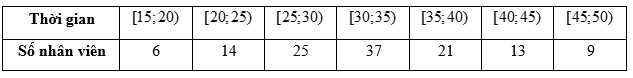 Câu 1 [1038170]: Cho mẫu số liệu ghép nhóm về thời gian (phút) đi từ nhà đến nơi làm việc của các nhân viên một công ty như sau: