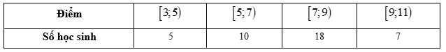 Điểm kiểm tra môn Toán của lớp 12A được cho trong bảng sau: