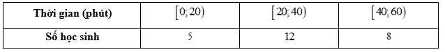Câu 2 [1038171]: Khảo sát thời gian tập thể dục trong ngày của một số học sinh khối 11 ta thu được mẫu số liệu ghép nhóm sau: