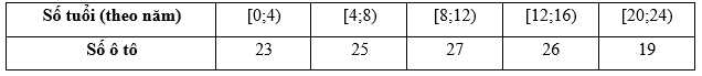 Câu 23 [1038197]: Một cuộc khảo sát đã tiến hành xác định tuổi (theo năm) của 120 chiếc ô tô. Kết quả điều tra được cho trong bảng sau: