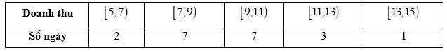 Câu 19 [1038193]: Doanh thu bán hàng trong 20 ngày được lựa chọn ngẫu nhiên của một cửa hàng được ghi lại ở bảng sau (đơn vị: triệu đồng).