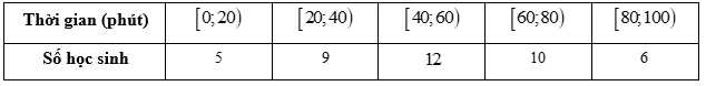 Câu 6 [1038180]: Khảo sát thời gian sử dụng điện thoại di động trong một ngày của một số học sinh khối 11 thu được mẫu số liệu ghép nhóm sau: