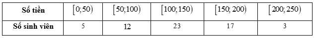 Câu 21 [1038195]: Cho mẫu số liệu ghép nhóm về số tiền (nghìn đồng) mà sinh viên chi cho thanh toán cước điện thoại trong tháng như sau: