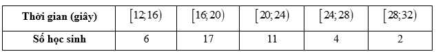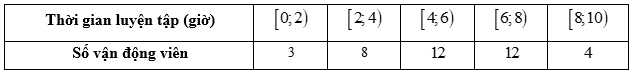 Câu 17 [1038191]: Thời gian luyện tập trong một ngày (tính theo giờ) của một số vận động viên được ghi lại ở bảng sau: