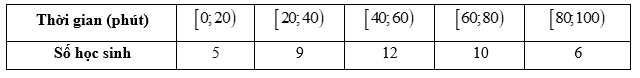 Câu 7 [1038181]: Khảo sát thời gian tập thể dục trong ngày của một số học sinh khối 12 thu được mẫu số liệu ghép nhóm sau: