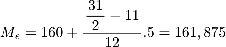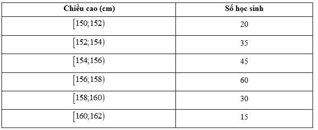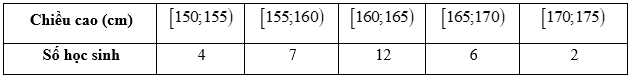 Câu 16 [1038190]: Khảo sát chiều cao của 31 bạn học sinh ( đơn vị cm), ta có bảng tần số ghép nhóm.