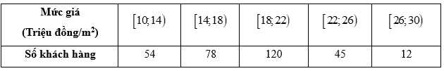 Câu 10 [1038184]: Một công ty xây dựng khảo sát khách hàng xem họ có nhu cầu mua nhà ở mức giá nào. Kết quả khảo sát được ghi lại ở bảng sau:
