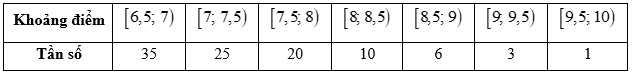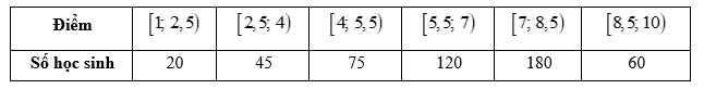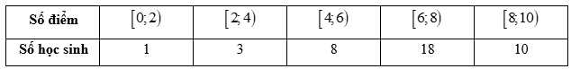 Câu 8 [1038182]: Theo số liệu thống kê điểm Giữa học kì I môn toán khối 10 của một trường THPT được cho bởi bảng số liệu sau: