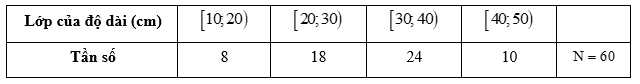 Câu 2 [1038176]: Độ dài của 60 lá dương xỉ trưởng thành được cho bằng bảng phân bố tần số ghép lớp như sau: