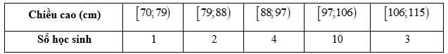 Câu 18 [1038192]: Cho mẫu số liệu ghép nhóm về chiều cao của 20 học sinh lớp lá như sau: