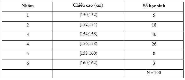 Câu 24 [1038198]: Đo chiều cao của học sinh khối lớp 10 của trường THPT, ta được mẫu số liệu sau: