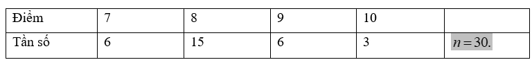 Câu 1 [1037964]: Điểm kiểm tra môn Toán học của 25 học sinh khối 9 có kết quả cao được ghi lại như sau: