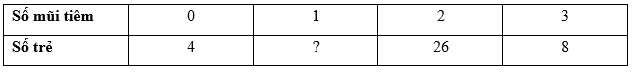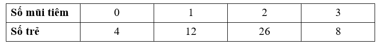 Câu 15 [1038361]: Một địa phương cho trẻ em từ 12 tháng tuổi trở lên tiêm vắc xin viêm não Nhật Bản. Bảng sau thống kê số mũi vắc xin viêm não Nhật Bản mà 50 trẻ em từ 12 đến 24 tháng tuổi tại địa phương này đã tiêm: