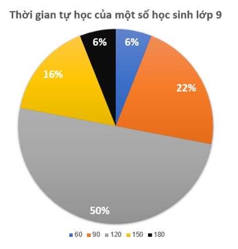 Đông nhất là nhóm học sinh tự học mỗi ngày 120 phút. Chọn biểu đồ hình quạt tròn có thể dễ dàng xác định nhóm số lượng học sinh tự học ở nhà đông nhất.