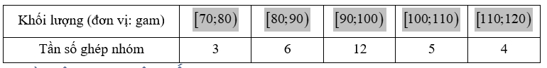 a) Hãy ghép các số liệu trên thành năm nhóm sau: [70;80), [80;90), [90;100), [100;110), [110;120). Tìm tần số của mỗi nhóm đó.