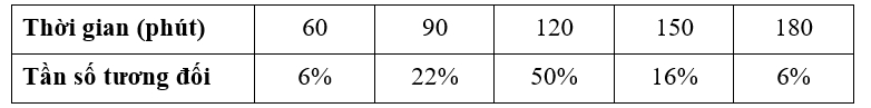 Câu 19 [1038365]: Bạn Hùng điều tra thời gian tự học của một số học sinh lớp 9 và trình bày kết quả trong bảng thống kê sau:
