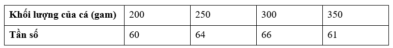 b) Hãy lập bảng tần số biểu diễn số liệu về khối lượng của cá.