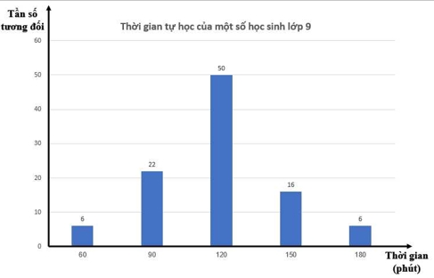 Có 71,89% học sinh tự học nhiều hơn 120 phút mỗi ngày. Chọn biểu đồ cột có thể dễ dàng xác định nhóm số lượng học sinh tự học ở nhà trên 120 phút.