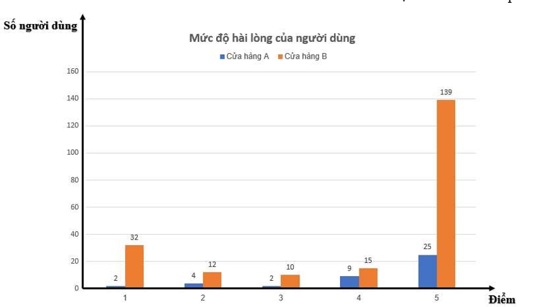 Để so sánh mức độ hài lòng của người dùng dành cho cửa hàng A và cửa hàng B, ta vẽ biểu đồ cột kép: