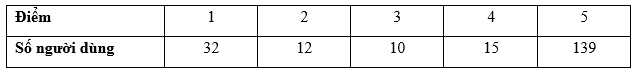 a) Bảng sau cung cấp điểm đánh giá của người dùng dành cho cửa hàng A. Hãy tính chỉ số CSAT của cửa hàng A.