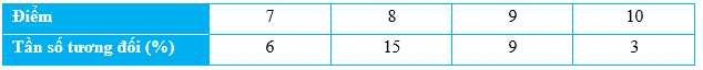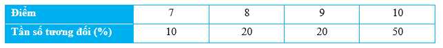 Bảng tần số tương đối biểu diễn số liệu đã cho là