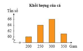 Câu 16 [1038362]: Biểu đồ bên dưới trình bày kết quả đo khối lượng của lứa cá đã nuôi được 2 tháng theo phương pháp mới do một trung tâm nuôi trồng thuỷ hải sản đang nghiên cứu: