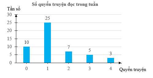 🔑 Chọn đáp án: Tần số tương đối của nhóm đọc được 1 quyển truyện lớn gấp 5 lần tần số tương đối của nhóm đọc 3 quyển.