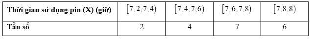 Câu 12 [1038358]: Kết quả khảo sát thời gian sử dụng liên tục (đơn vị: giờ) từ lúc sạc đầy cho đến khi hết pin của một số máy vi tính cùng loại được thống kê ở bảng sau: