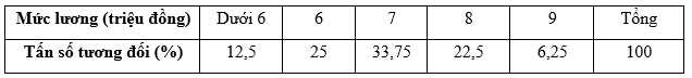 Câu 18 [1038364]: Ban chấp hành Công đoàn điều tra lương của một số công nhân trong nhà máy và thống kê trong bảng sau: