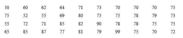 Người ta tiến hành phỏng vấn 40 người về một mẫu sản phẩm mới. Người điều tra yêu cầu mỗi người được phỏng vấn cho điểm mẫu sản phẩm đó theo thang điểm là 100. Kết quả thống kê như sau: