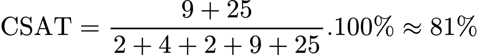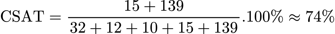 Chỉ số mức độ hài lòng CSAT (Customer Satisfaction Score) là một chỉ số đo lường sự hài lòng của khách hàng về một dịch vụ nào đó. Chỉ số này được tính theo công thức: