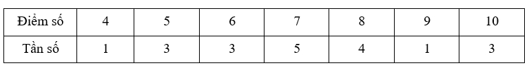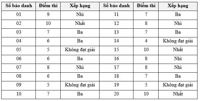 Câu 10 [1038376]: Kết quả của 20 học sinh trường A tham gia vòng chung kết cuộc thi Tìm hiểu Lịch sử Việt Nam được cho ở bảng sau: