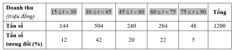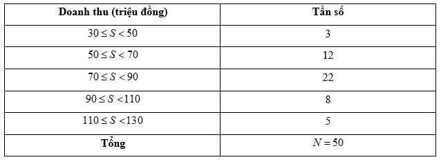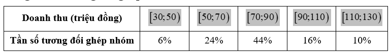 Câu 14 [1038380]: Bảng dưới thống kê doanh thu trong một tuần của 50 cửa hàng thuộc công ty X:
