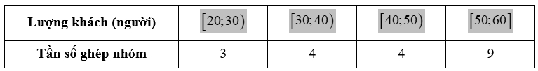 Câu 4 [1038370]: Bảng 10.22 ghi lại lượng khách hằng ngày đến tham quan một viện bảo tàng nghệ thuật trong 20 ngày.