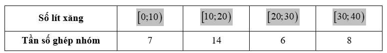 Câu 5 [1038371]: Trong 1 giờ, cửa hàng xăng dầu ghi lại số lít xăng mà mỗi khách hàng mua.