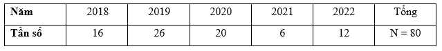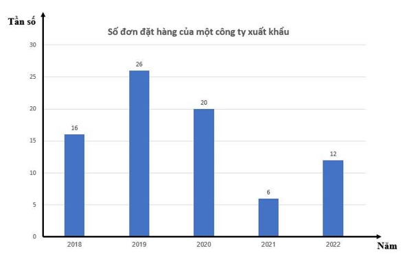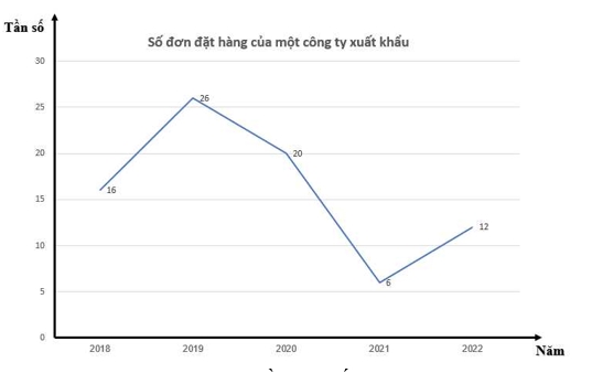 Câu 6 [1038372]: Một công ty xuất khẩu các mặt hàng nông sản thống kê lại trong bảng sau số đơn đặt hàng trong mỗi năm thuộc giai đoạn 2018 – 2022: