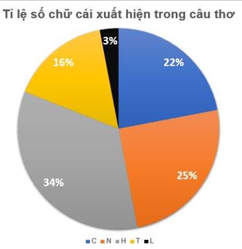 Mẫu dữ liệu thống kê các chữ cái C, N, H, T, L lần lượt xuất hiện trong những câu thơ trên là:
