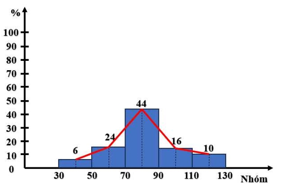 Biểu đồ tần số tương đối ghép nhóm dạng cột và biểu đồ tần số tương đối ghép nhóm dạng đoạn thẳng: