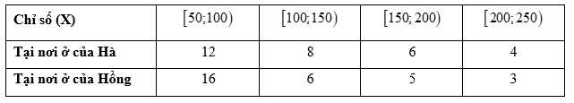 Câu 13 [1038379]: Hai bạn Hà và Hồng thống kê lại chỉ số chất lượng không khí (AQI) nơi mình ở tại thời điểm 12:00 mỗi ngày trong tháng 9/2022 bảng sau: