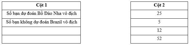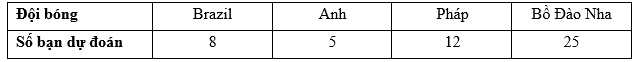 Số bạn dự đoán Bồ Đào Nha vô địch là 25 bạn.