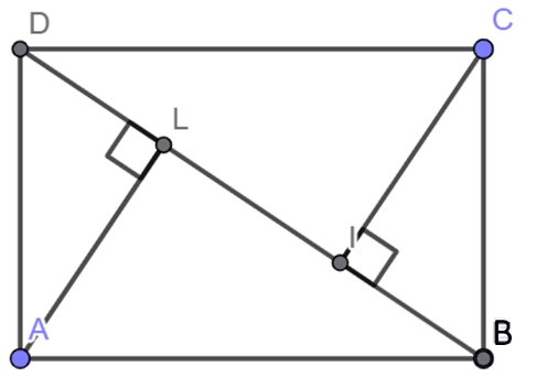 Câu 14 [1038058]: Cho hình chữ nhật ABCD. Gọi AL và CI tương ứng là đường cao của các tam giác ADB và BCD. Cho biết